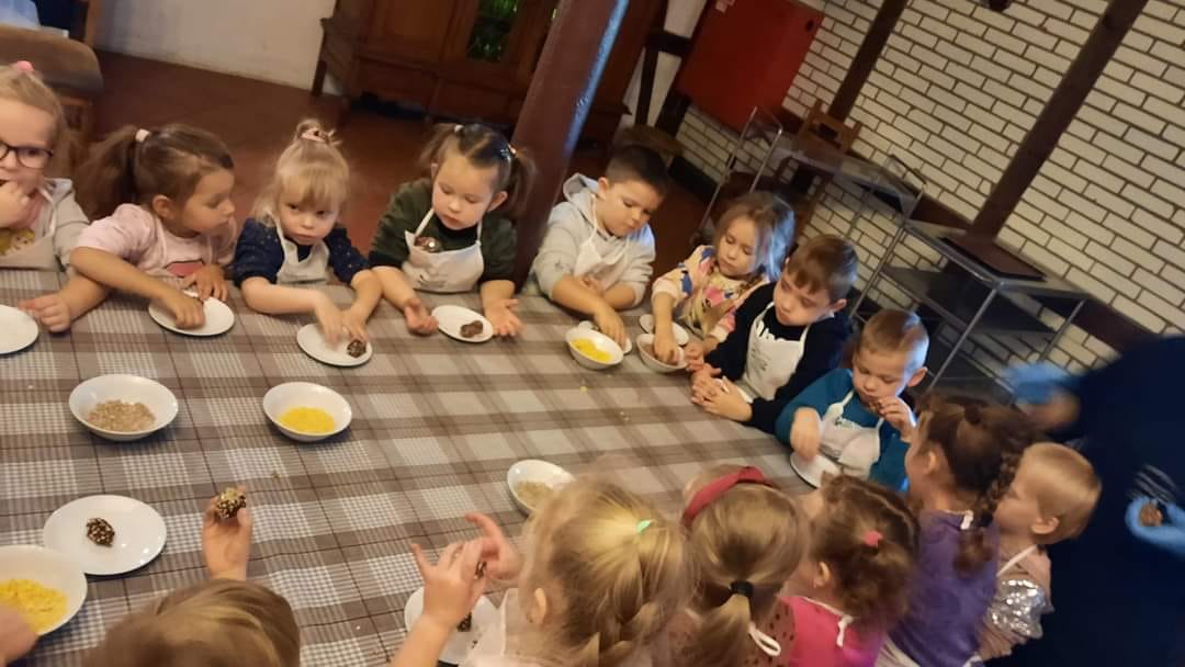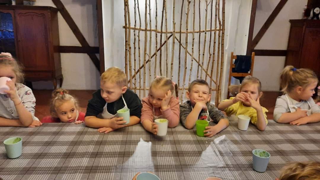 Przedszkolaki wyruszyły na wycieczkę do Hotel karczma Stara Stajnia w Zawidowicach. Na miejscu czekały na nich warsztaty przygotowywania słodkich kulek mocy bez cukru oraz smoothie warzywno - owocowego