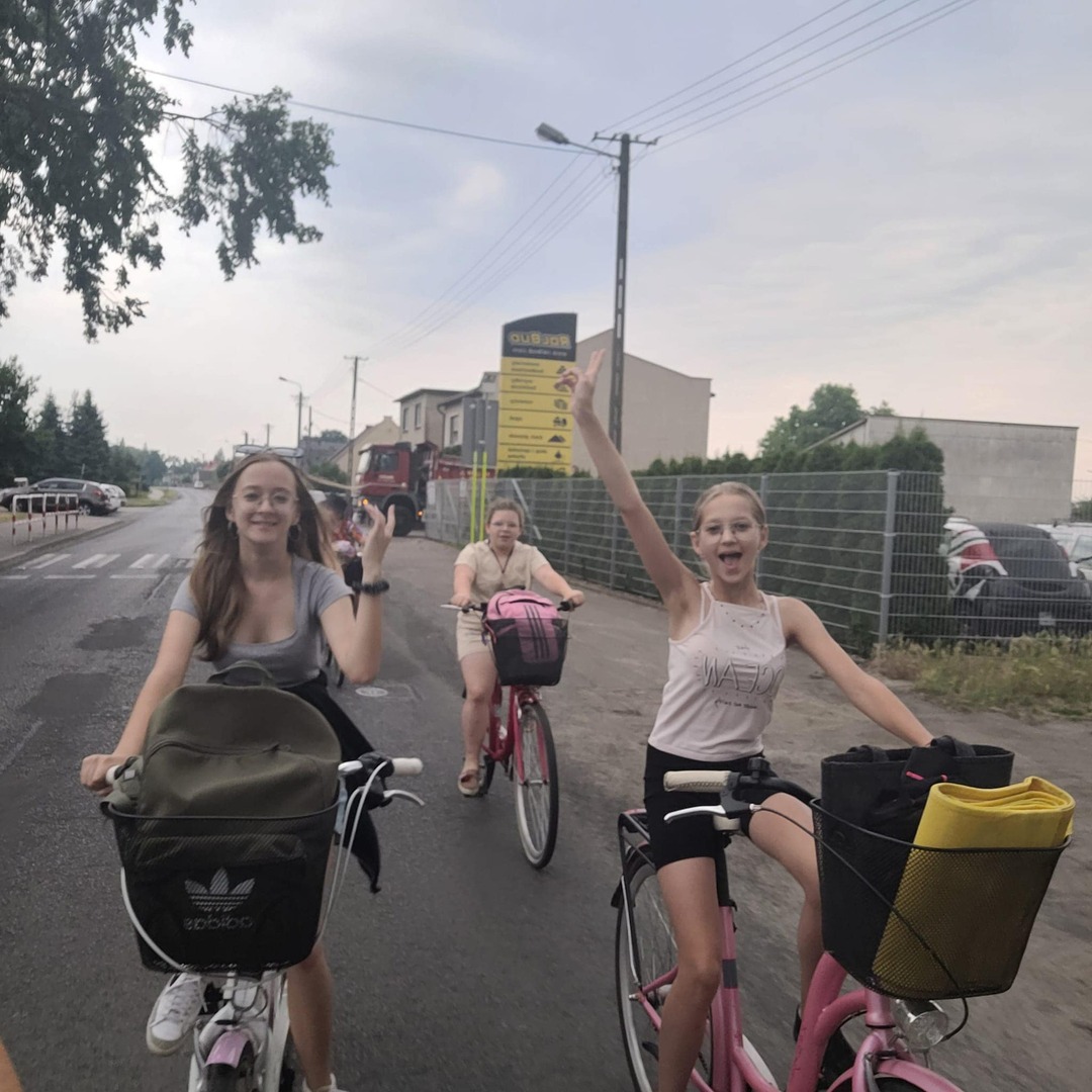 Uczniowie klasy 8 z młodszymi kolegami wyruszyli dzisiaj na wycieczkę rowerową na ranczo pani Darii. I choć pogoda nie była sprzyjająca
