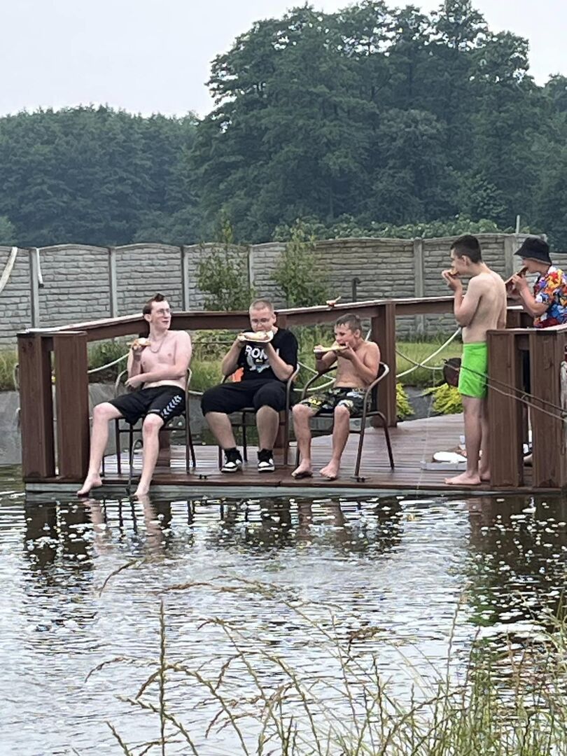 Chłopcy to zapaleni wędkarze dlatego szybko rozłożyli sprzęt nad stawem