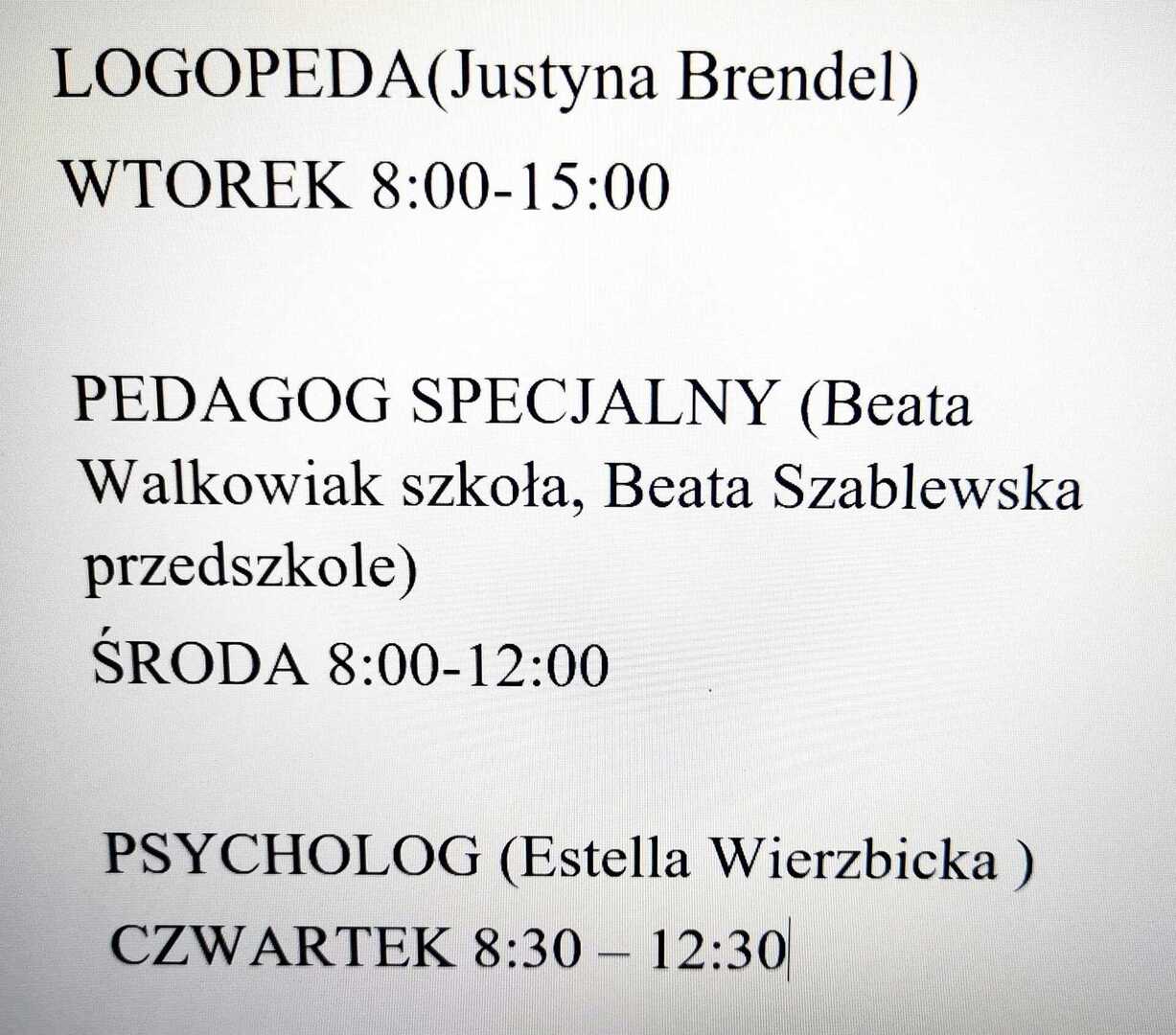 Plan pracy specjalistów w naszej placówce! Pełnią oni rolę zarówno wspomagającą jak i wspierającą!