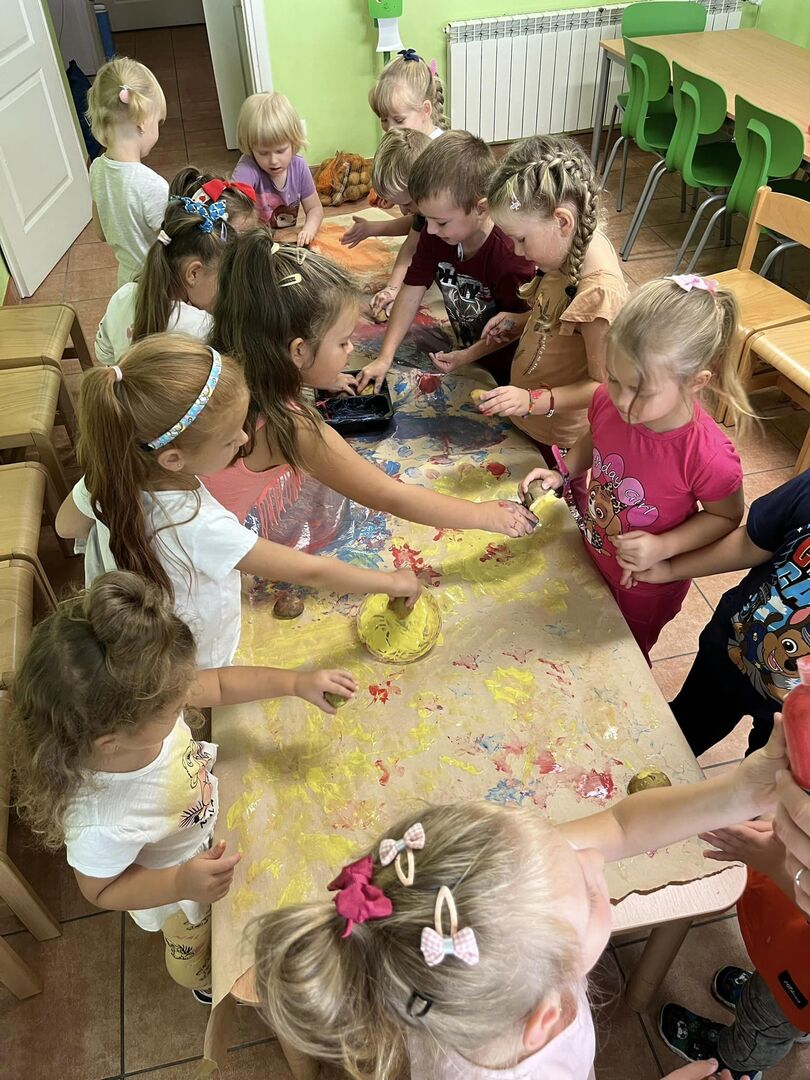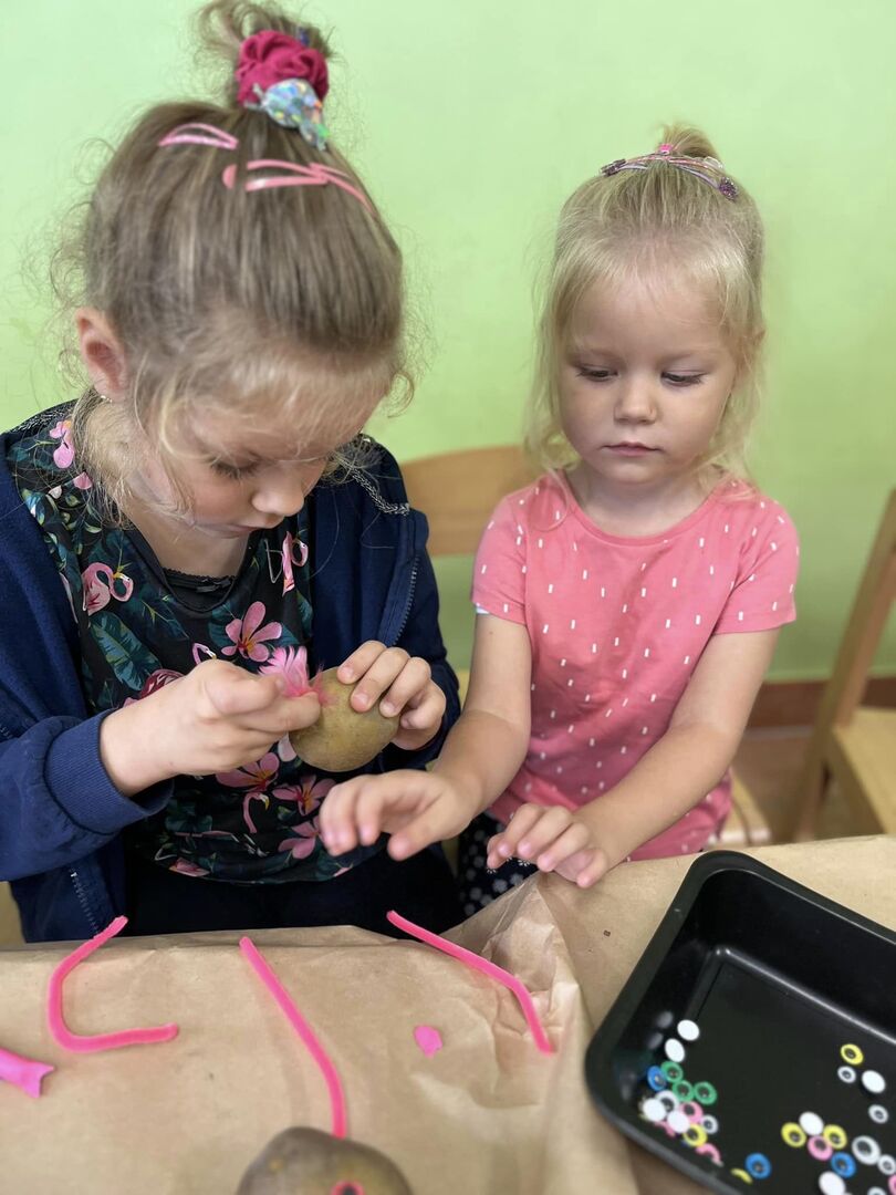 Panie wychowawczynie przygotowały zabawy plastyczne: pieczątki z ziemniaków i ziemniaczane cudaki.