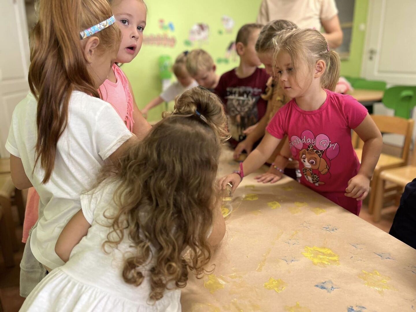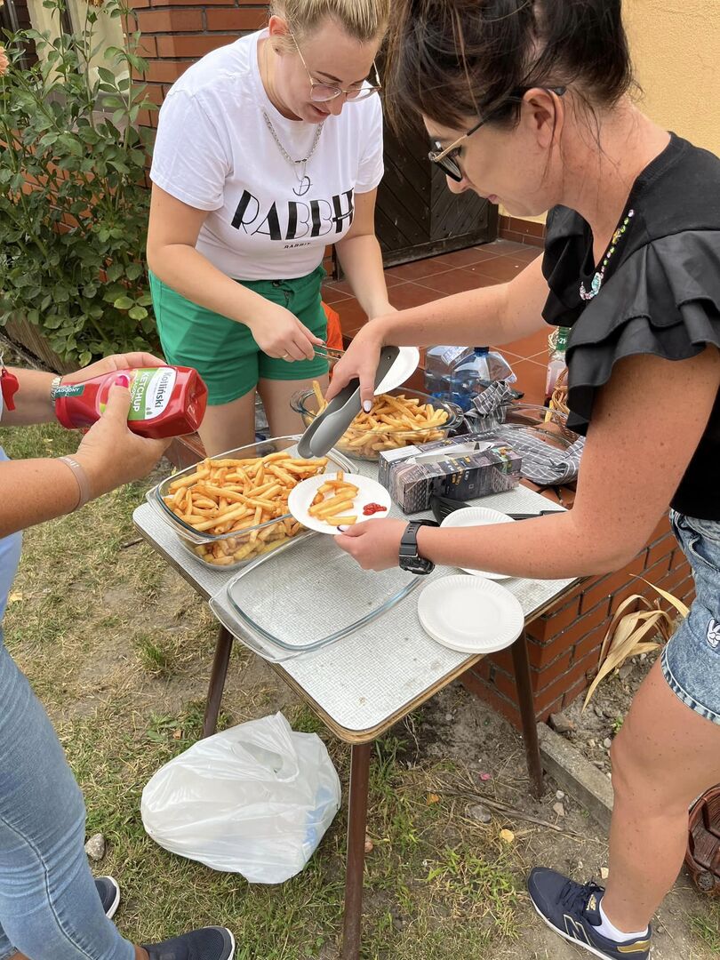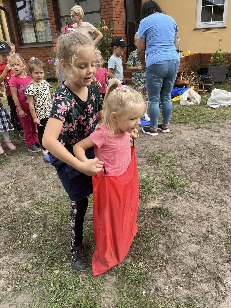 Dzieci miały okazję spróbować ziemniaków pieczonych w ognisku. Wykopywanie pyrek i szukanie ukrytych kartofli, wyścig w workach, bieg z ziemniakiem i inne konkurencje sportowe rozbawiły przedszkolaków. Lody na ochłodę, a potem przygotowane przez Mamy frytki zakończyły dzień w przedszkolu.