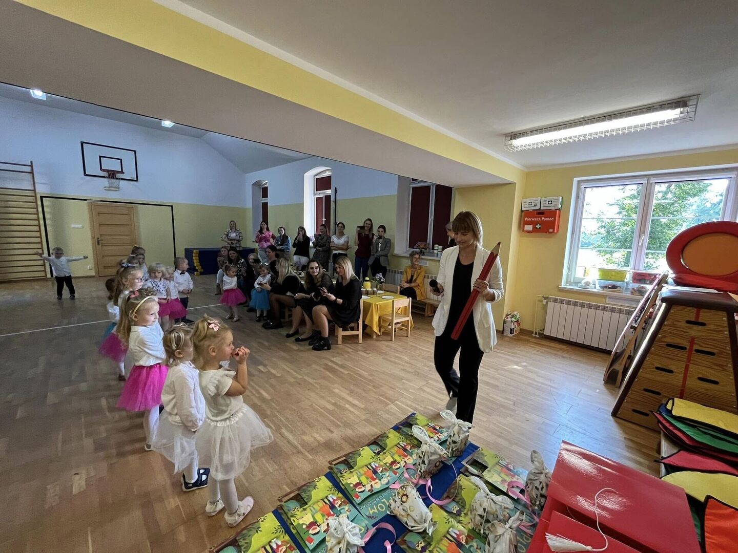 Pasowanie na Przedszkolaka to pierwsza wyjątkowa uroczystość w życiu każdego dziecka, które we wrześniu tego roku po raz pierwszy rozpoczyna swoją przygodę z przedszkolem. Dzieci po raz pierwszy zaprezentowały swoje umiejętności wokalne, recytatorskie i taneczne na szerszym forum. Następnie złożyły uroczyste ślubowanie, a Pani Daria w zastępstwie za Panią Dyrektor dokonała uroczystego pasowania. Na pamiątkę tak ważnego wydarzenia wręczyła każdemu dziecku dyplom. Wielkie brawa dla Pań za przygotowanie