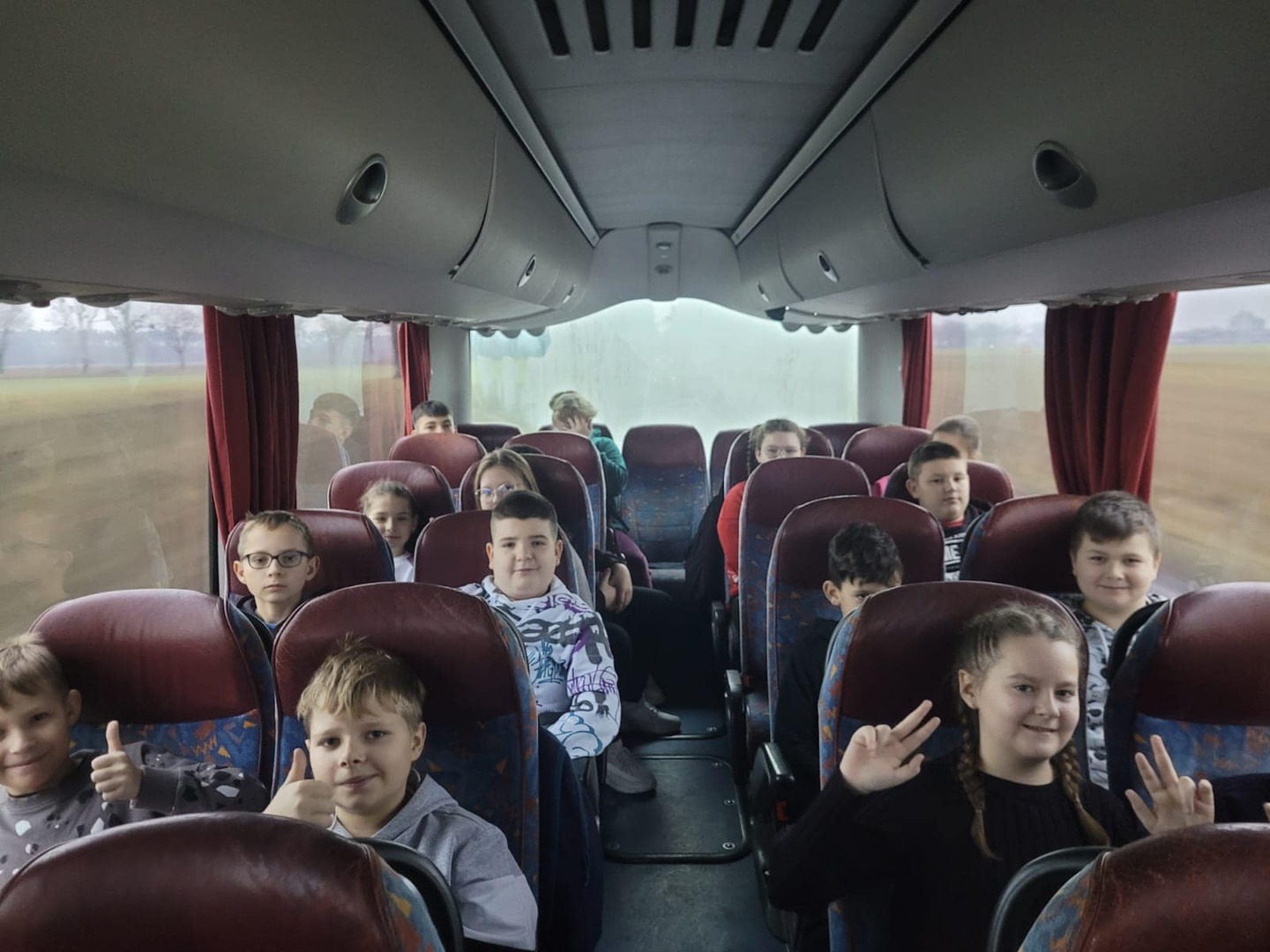 Na wycieczkę szkolną do Biskupina pojechali prawie wszyscy uczniowie. Na miejscu zwiedzili Muzeum Archeologiczne w Biskupinie i Interaktywne Muzeum Rybactwa w Biskupinie. Pan przewodnik w interesujący sposób opowiadał o życiu ludzi na tym terenie w baaardzo dawnych czasach. Po wizycie w zagrodzie zwierząt i smacznym posiłku uczniowie wzięli udział w świątecznych warsztatach: pieczenia pierników i bułeczek, tworzenia świątecznych ozdób. Dzieci bardzo chętnie uczestniczyły w karaoke, śpiewając świąteczne piosenki i kolędy. Nasze Pierwszaki były bardzo dzielne i odważnie wyruszyły w długą podróż bez mamy i taty.