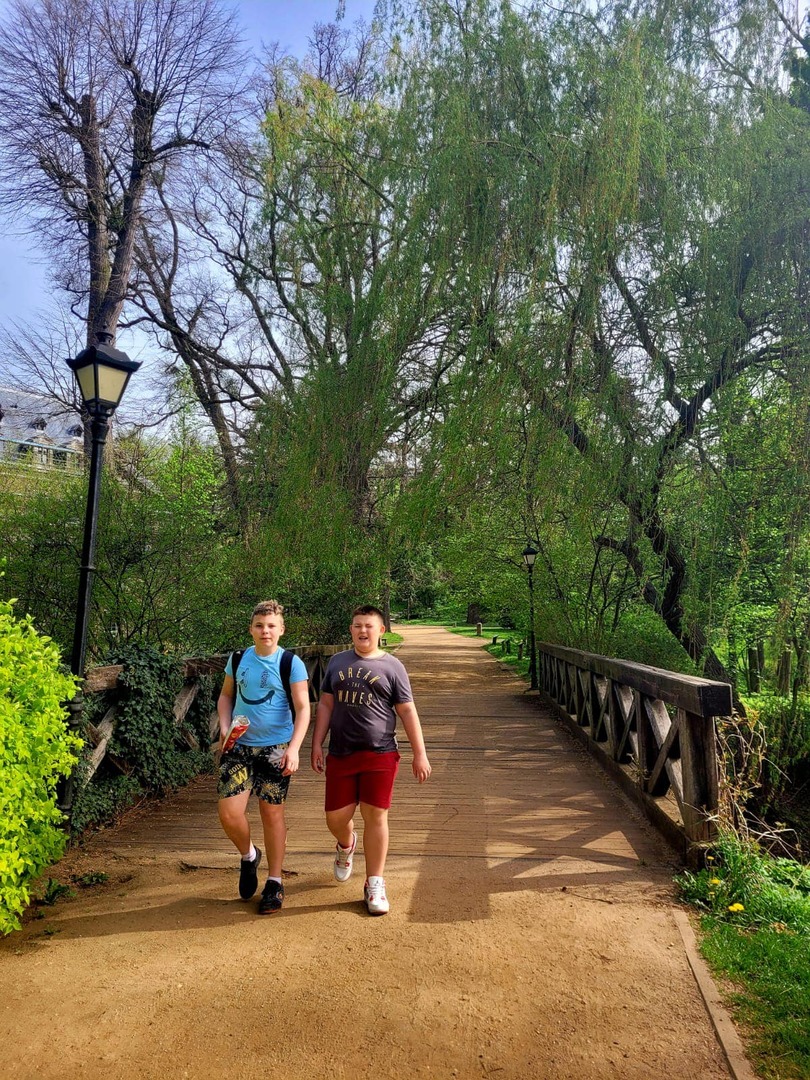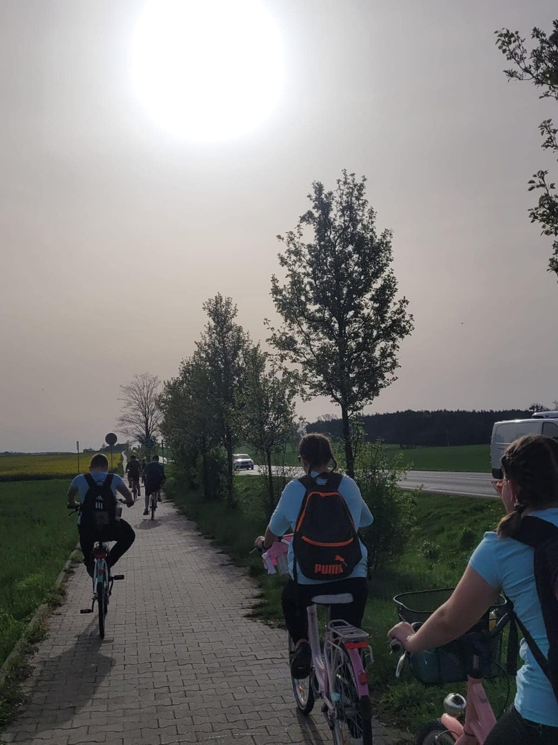 Uczniowie i uczennice starszych klas pojechali na wycieczkę rowerową do Gołuchowa. Pogoda sprzyjała takim eskapadom