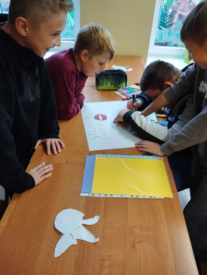 2 października obchodzony jest Światowy Dzień bez Przemocy. Uczniowie klas 5,6 i 7 rozpoczęli cykl warsztatów z panią Beatą Szablewską na których zapoznają się z różnymi formami przemocy, sposobami radzenia sobie z nią, a także z konsekwencjami jakie poniosą osoby stosujące przemoc.