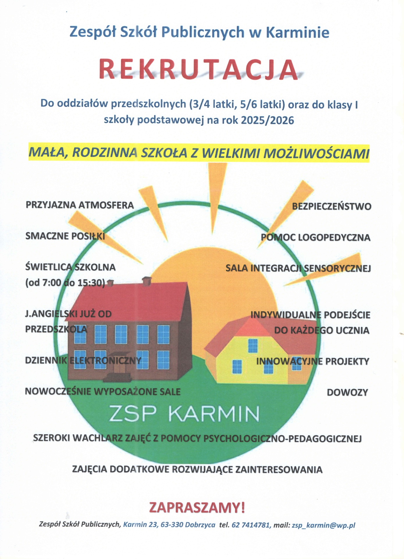Trwa rekrutacja do naszego przedszkola i szkoły. Zapraszamy wszystkich chętnych 😀